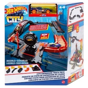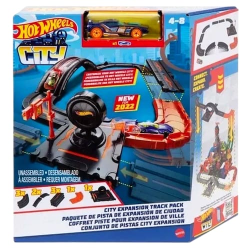 O Hot Wheels City Track Pack inclui 10 peças de pista essenciais para criar e construir uma paisagem urbana Hot Wheels. Este conjunto é ótimo para lançar as bases para qualquer paisagem Hot Wheels ou para aprimorar uma construção existente. Ele vem com formas flexíveis e múltiplas, como peças curvas, praça da cidade e ponte de trilhos, além de detalhes como semáforo e portão móvel. Cada peça se encaixa com outros conjuntos Hot Wheels City que as crianças podem usar para experimentar e resolver problemas enquanto criam a construção mais épica. Um carro Hot Wheels está incluído. Cores e decorações podem variar.