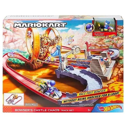 Competir em pistas Hot Wheels ficou ainda mais emocionante com Hot Wheels Pista Mario Kart Castelo do Caos da Mattel As crianças podem correr com seus veículos réplicas de Hot Wheels Mario Kart para superar o inimigo mais malvado de Mario Kart, o Bowser