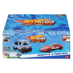 Estes Hot Wheels Pullback Mighty K e Twin Mill da Mattel são itens essenciais para os colecionadores e amantes de carros em miniatura. Com um design exclusivo e detalhes realistas, eles são ideais para colecionar e brincar. O modelo é perfeito para corridas emocionantes, podendo também ser utilizado como item de decoração. Puxe para trás e solte-os para vê-los correr com velocidade, estilo e desempenho impressionantes. Estes veículos Diecast Hot Wheels maiores que o normal têm uma escala 1:43 e decorações autênticas. Idade recomendada: A partir de 3 anos. Selo Inmetro: 005083/2021.