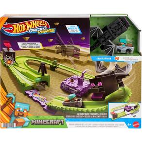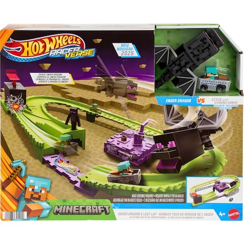 Descrição do produto : Você pode correr para o O Fim - o nível final e icônico do Minecraft - com um Hot Wheels RacerVerse Steve com Armadura de Diamante e derrotar um temível Dragão Ender giratório! Você pode dar corda no nêmesis e lançar Steve em seu Carrinho de Mina die-cast no momento certo para fazer uma manobra de salto e correr para evitar ser jogado para fora da pista. Cada volta concluída diminui a barra de saúde do inimigo e, quando ele é derrotado após seis voltas, o Dragão Ender vira. As cores e as decorações podem variar. : Detalhes técnicos : Marca: Mattel : Referência: JFP34 : Idade recomendada: A partir de 4 anos : Material: Plástico resistente : Ean: 194735302994 : Contém na Embalagem : 1 conjunto de pista Hot Wheels RacerVerse Minecraft e o exclusivo Hot Wheels RacerVerse Steve com Armadura de Diamante.