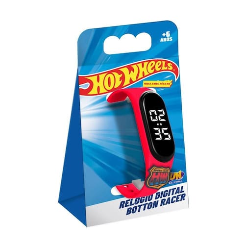 Deixe os apaixonados por carros e adrenalina encantados com o Hot Wheels Relógio Digital Botton Racer! Com um design moderno e ajustável, esse relógio une funcionalidade e o universo das corridas de forma única. Perfeito para ensinar as crianças a lerem as horas de maneira divertida e prática, ele se destaca com seu display em LED, que exibe hora. A pulseira confortável e ajustável com detalhes temáticos de Hot Wheels tornam esse acessório ainda mais especial.