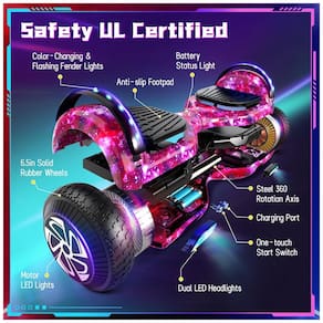 O Hoverboard SISIGAD 6,5" na elegante cor K02 Roxo Estrelado combina segurança, tecnologia e diversão em um design moderno e atraente. Desenvolvido para crianças de 6 a 12 anos, este modelo oferece um sistema de autoequilíbrio intuitivo, ideal para iniciantes e usuários que buscam estabilidade e conforto. Equipado com motores duplos de alto desempenho, bateria de íon de lítio com carregamento rápido e longa duração, garante passeios prolongados com total confiabilidade. Suas rodas de 6,5 polegadas com pneus de borracha de alta qualidade e plataformas confortáveis proporcionam uma condução suave, enquanto o alto-falante Bluetooth integrado com luzes LED transforma cada trajeto em uma experiência visual e sonora única. Certificado UL2272, o SISIGAD é seguro e confiável, tornando-se o presente perfeito para crianças e iniciantes que desejam diversão, estilo e mobilidade prática com segurança.