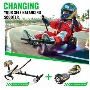 Transforme o hoverboard em um kart seguro e divertido. O assento expansível proporciona maior agilidade e conforto, com comprimento ajustável de 72 cm a 85 cm, ideal para crianças e adultos.