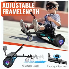 Transforme o hoverboard em um kart seguro e divertido. O assento expansível proporciona maior conforto e agilidade, com comprimento ajustável de 72 cm a 85 cm, ideal para crianças e adultos.