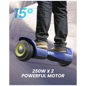 Equipado com dois motores de 250 W, que juntos somam 500 W de potência, o hoverboard proporciona aceleração suave e controle preciso, alcançando até 12,5 km/h de velocidade máxima. Seu sistema de autoequilíbrio inteligente facilita o aprendizado, permitindo que iniciantes dominem a condução em poucos minutos. O modelo ainda conta com pneus off-road de borracha sólida e estrutura reforçada, projetados para enfrentar terrenos variados como grama, cascalho e piso de concreto, mantendo estabilidade e aderência em qualquer superfície.
