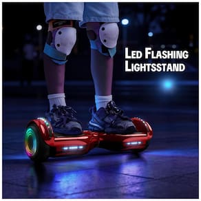 O hoverboard Hoverstar Cromo Vermelho é ideal para crianças e adolescentes que procuram diversão, estilo e segurança. Certificado pelo padrão UL dos EUA, garante desempenho elétrico seguro e confiável. Equipado com faróis de alta intensidade e rodas com luzes LED, proporciona passeios mais seguros e iluminados.