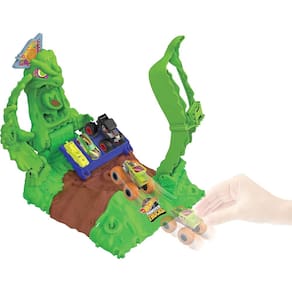 Lance o Gunkster que brilha no escuro na gosma iluminada para derrotá-la! Os pontos de colisão designados indicam às crianças onde é necessário mirar o Gunkster para derrotar o monstro de gosma. Tenha cuidado! Se bobear, o monstro da gosma vai atacar! A base se move e balança, permitindo que as crianças sintam o poder de esmagar e colidir em suas mãos. Encha as arquibancadas com carros adicionais de metal ou para esmagar, ou coloque os carros em pontos especiais no conjunto para ainda mais destruição. (Inclui 1 Hot Wheels Monster Truck Gunkster e 2 carros para esmagar, que brilham no escuro. Caminhões e carros adicionais vendidos separadamente.) As crianças podem combinar este conjunto a outros conjuntos Monster Trucks Arena Smashers para brincadeiras e aventuras sem fim.