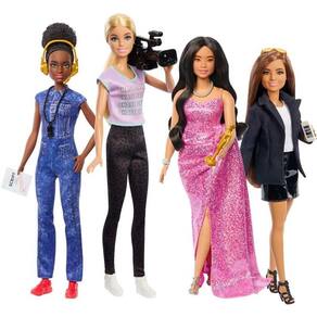 Barbie já trabalhou em mais de 250 profissões, e suas bonecas anuais Carreira do Ano destacam posições em que as mulheres estão sub-representadas. Para 2024, estamos estreando um conjunto de grande sucesso com quatro papéis no cinema. Cada boneca veste uma roupa profissional e vem com acessórios relacionados ao seu trabalho. Inspirando a imaginação com infinitas possibilidades, o conjunto de bonecas Barbie Women in Film é um ótimo presente para fãs de cinema de qualquer idade, incentivando-os a explorar o mundo e seguir seus sonhos