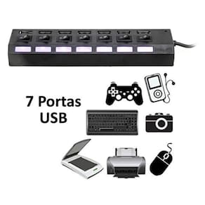 Hub adaptador usb 2.0 multi 7 portas plug and play extensor
