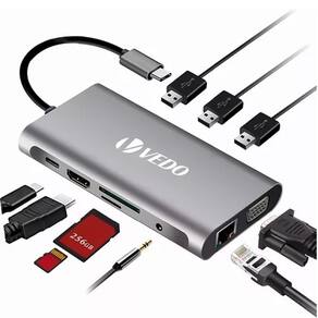 Hub adaptador 10 em 1: conectividade e versatilidade em um só dispositivo transferência rápida de dados: expanda sua velocidade de transferênciadesfrute de taxas de transferência de dados ultrarrápidas de até 5 gbps em todas as portas usb. Com essa velocidade, é possível transferir um filme em hd em questão de segundos. A porta gigabit ethernet suporta velocidades de rede de 10/100/1000 mbps, proporcionando uma experiência de internet tranquila. Além disso, as portas sd e tf suportam velocidades de transferência de dados de até 150 mbps, permitindo a leitura simultânea de cartões sd e tf. Extensão incrível: desfrute de vídeos em tela grandeaproveite a comodidade de assistir a filmes e vídeos em uma tela maior. Com a saída hdmi e vga do adaptador hub usb-c vedo, é possível desfrutar de vídeo 4k a 30 hz ou 1080p. Espelhe ou estenda sua tela para uma tv, monitor ou projetor e desfrute de uma experiência cinematográfica sem restrições de espaço. Carregamento rápido: energia sempre disponívelcom a porta de carregamento de 60 w, você pode alimentar seu computador, macbook pro ou outros dispositivos tipo c enquanto realiza transferências de dados. Equipado com chips avançados de núcleo duplo, o adaptador oferece excelente dissipação de calor e operação eficiente, garantindo proteção dupla para você e para o dispositivo. Com o hub adaptador 10 em 1, sua conectividade é ampliada e suas tarefas são simplificadas. Aqui, na eletrônica santana dados técnicos: Especificações - compatível com laptops meeste com interface tipo c - smartphones compatíveis com interface tipo c e função otg - interface 10 em 1: - 1 4k 3840 x 2160 / 30hz hd mi - 1 Vga - 1 Gigabit ethernet lan rj45 banda de reprodução de 10/100/1000mbps - 3 Usb 3.0 overdach de dados de alta velocidade, flash disk/muis/toetsenbord enzovoort - 1 Porta tipo c. - 1 Slot para cartão sd - 1 Slot para cartão tf - 1 Conector de áudio de 3,5 mm Compatibilidades - produto compatível com notebook, tablets, smartphones ou qualquer equipamento que possua entrada usb-c thunderbolt 3 ou usb c 3.2 gen 2. Homologação Anatel: 126732213457 Ean: 7223231525217