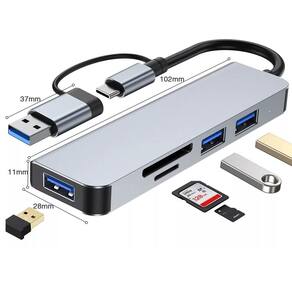 Hub Multifuncional Extensor Type- C 5 Em 2 Pega Cartão