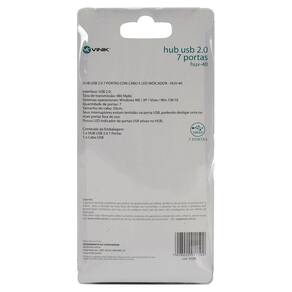 HUB com 7 portas 2.0 ativas Com interruptor que permite ativar ou desativar as portas do HUB, evitando congestionamento da porta USB do computador Ideal para laptop e PC Cabo USB incluso Interface: USB 2.0 Taxa de transmissão: 480 Mpbs Sistemas operacionais: Windows ME / XP / Vista / Win 7/8/10 Quantidade de portas: 7 Tamanho do cabo: 50cm Seus interruptores evitam lentidão na porta USB, podendo desligar uma ou mais portas fora de uso. Possui LED indicador de portas USB ativas no HUB. Conteúdo da Embalagem: 1 x HUB USB 2.0 7 Portas 1 x Cabo USB