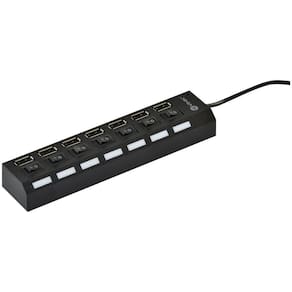 HUB com 7 portas 2.0 ativas Com interruptor que permite ativar ou desativar as portas do HUB, evitando congestionamento da porta USB do computador Ideal para laptop e PC Cabo USB incluso Interface: USB 2.0 Taxa de transmissão: 480 Mpbs Sistemas operacionais: Windows ME / XP / Vista / Win 7/8/10 Quantidade de portas: 7 Tamanho do cabo: 50cm Seus interruptores evitam lentidão na porta USB, podendo desligar uma ou mais portas fora de uso. Possui LED indicador de portas USB ativas no HUB. Conteúdo da Embalagem: 1 x HUB USB 2.0 7 Portas 1 x Cabo USB
