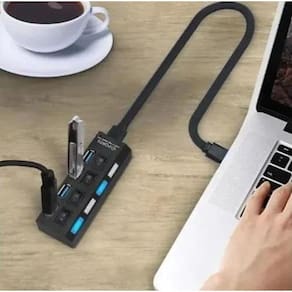 Hub usb 2.0 alta velocidade 4 portas com led indicador Características principais Marca Hi-speed Modelo Hub usb 2.0 Descrição Hub 2.0 de alta velocidade com 4 portas usb: Possui led que permite identificar a porta que está sendo utilizada. Conexão plug and play, bastando conectar a uma saída usb do pc. Ideal para conectar teclados, mouses, fones e carregadores todos ao mesmo tempo e mantendo a velocidade de conexão , sem causar lentidões. Especificações técnicas: Usb: 2.0; Portas: 4 portas; Taxa de transferência: usb 2.0 - 1.5 mbps/12 mbps, até máx. 480mbps; Compatibilidade: windows, os ou linux sistemas. Itens inclusos: 01 hub usb 4 portas. Marca: Não Informado