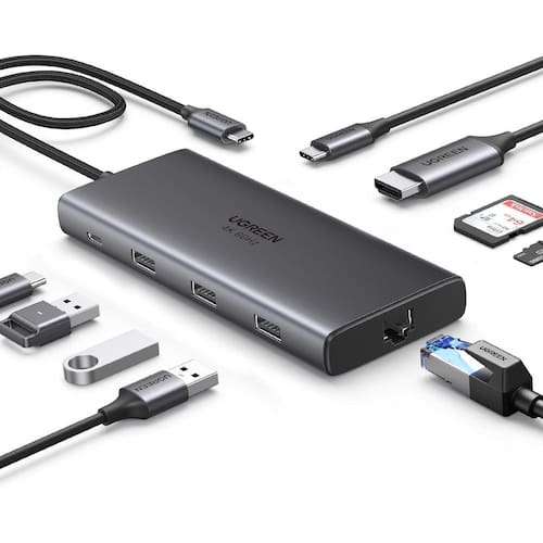 O Hub Adaptador Usb-C 3.2 Ugreen Pd 100W Rj45 Leitor Cartão 4K é a solução perfeita para aproveitar ao máximo a porta USB-C do seu laptop. Com uma variedade de portas e recursos, este hub permite que você expanda as possibilidades de conexão do seu dispositivo. Com uma porta USB-C 3.2 Gen 2 de 10 Gbps, uma porta USB-A 3.2 Gen 2 de 10 Gbps e uma porta HDMI 4K a 60 Hz, você pode transferir arquivos, assistir a vídeos em alta resolução e carregar seu laptop com facilidade. Além disso, o hub possui um leitor de cartões e uma porta Ethernet de 1000 Mbps para uma conectividade ainda mais versátil. A porta USB-C marcada como 10 Gbps é exclusivamente para transmissão de dados e não suporta saída de vídeo ou carregamento. Certifique-se de que seu dispositivo suporte a saída de vídeo via porta USB-C. Com uma tela imersiva 4K a 60 Hz, você pode conectar seu laptop a um monitor externo e desfrutar de imagens nítidas e detalhadas. Lembre-se de verificar se o seu dispositivo é compatível com a saída de vídeo via porta USB-C. Com uma fonte de alimentação de 100 W, você pode carregar seu laptop enquanto usa o hub. Isso é especialmente útil quando você precisa manter seu dispositivo ligado por longos períodos. A porta Ethernet de 1000 Mbps oferece uma conexão de internet ultrarrápida, permitindo que você desfrute de chamadas de vídeo, filmes e jogos sem atrasos. O hub também é compatível com quase todos os dispositivos USB-C, garantindo uma ampla compatibilidade. Este hub também possui um leitor de cartões que suporta a leitura simultânea de dois cartões e velocidades de transferência rápidas de até 104 MB/s. Além disso, possui uma porta de carregamento USB-C com suporte a Power Delivery de 100 W, permitindo que você conecte vários periféricos enquanto carrega o dispositivo host. O Hub Adaptador Usb-C 3.2 Ugreen Pd 100W Rj45 Leitor Cartão 4K é plug & play e não requer a instalação de drivers em sistemas como Windows 11/10/8.1/8, OS, Linux, iPadOS, iOS e Android. Com uma velocidade de transferência de dados de 10 gigabits por segundo, este hub oferece desempenho rápido e eficiente para todas as suas necessidades de conexão. Com dimensões de 19,5 x 11,1 x 1,9 cm e peso de 200g, este hub é compacto e portátil, facilitando o transporte e o uso em qualquer lugar. Expanda as possibilidades de conexão do seu laptop com o Hub Adaptador Usb-C 3.2 Ugreen Pd 100W Rj45 Leitor Cartão 4K. Marca: Não Informado