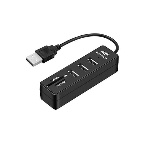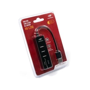 O HU-L200BK da C3Tech é um hub USB 2.0 compacto e versátil que adiciona três portas USB, além de leitores para cartões SD e microSD/TF, ideal para expandir conexões em notebooks e desktops. Precisa de alimentação externa? Não — ele funciona diretamente pela porta USB do seu computador, com plug-and-play compatível com USB 1.1/2.0 e sistemas Windows. Sua taxa de transferência chega a até 480?Mbps, perfeita para arquivos, pendrives e leitura de mídia. O cabo de aproximadamente 11?cm oferece flexibilidade no posicionamento, e o corpo em ABS torna o dispositivo resistente e leve (cerca de 110?g com embalagem) Caracteristicas: