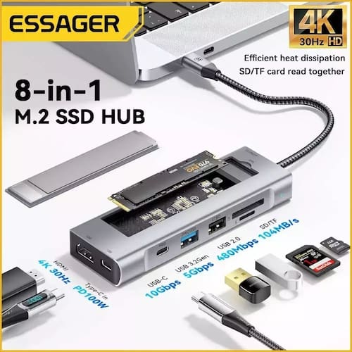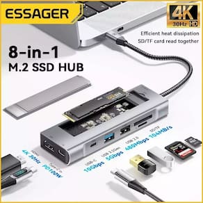 Experimente uma nova era de comando de conectividade com o Hub USB-C 8 em 1. Indispensável para quem busca eficiência e praticidade, este dispositivo transforma seu espaço de trabalho em uma verdadeira central. Quer esteja no escritório ou em casa, com suas características e potência, você se apaixonará à primeira vista. Além do que apenas um hub USB, ele também oferece armazenamento integrado, combinando tecnologia avançada com um design elegante para melhorar sua experiência digital.