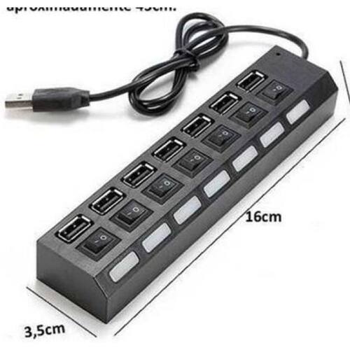 - Super Hub USB 7 portas; - Velocidade 2.0 Transferência de dados em alta velocidade - Compatível com USB 1.1 - Possui proteção contra sobrecargas; - Cabo: 30 cm - Tamanho: 1632235mm - Data Taxa de Transferência: 5.0 Gb/s - Cor: Preto/Branco Enviado aleatório - Compatível com Windows 98, ME, 2000, XP, Vista, Windows 7, Windows 8.