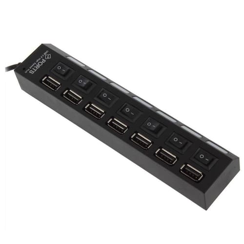 Características: Converte uma unica porta usb em 7 portas com interruptor de energia Transferência de dados de até 480 mbps; Plug-and-play; Funciona perfeitamente com todos os dispositivos usb 1.1 e 2.0 Suporta dispositivos usb até 500gb