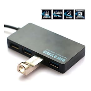 HUB Tipo C USB Ultra Thin 4 portas Speed 3.0 Design compacto, para fácil transporte e uso conveniente, tecnologia 3.0 compatível com os principais sistemas operacionais de PCs e ceres. Entrada tipo C, ideal para transferência de dados em alta velocidade e recarga elétrica de dispositivos móveis. Características principais:\ nVelocidade máxima de transmissão de dados: 5 Gbps\ nMaterial de fabricação: ABS à prova de fogo, reciclável\ nModo de conexão: Plug and PlayCor: Preto\ NDimensões: 74 mm x 40 mm x 11 mm Comprimento do cabo: 140 mm Porta de entrada: Tipo de porta de saída: USB Plug Port Saída: 4 Certificações: FCC, RoHS e CE. Peso: 15 gramas