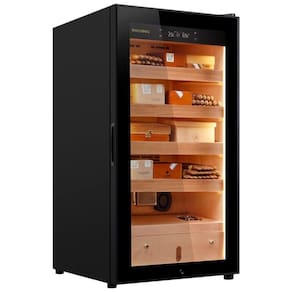 O armário de charutos New MA50 da Raching é um produto de alta qualidade, projetado para armazenar e envelhecer charutos de forma eficiente. Com capacidade para 400 charutos e 100L de espaço interno, este armário possui um sistema termo-higrômetro embutido, com 5 sistemas para controlar a temperatura e a umidade, garantindo que seus charutos permaneçam nas melhores condições. Com um acabamento em madeira de alta qualidade e bandejas de cedro espanhol, este armário é perfeito para armazenar charutos em casa ou no escritório. As medidas são 51cm x 55cm x 95cm e o peso é de 50kg. Adquira o seu e desfrute de charutos perfeitamente armazenados e envelhecidos!