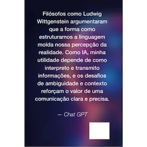 Em IA, Uma Autobiografia, o próprio ChatGPT conduz o leitor por uma jornada intelectual e filosófica sobre sua criação, evolução e o impacto da inteligência artificial na sociedade. Desde as primeiras concepções teóricas em Cambridge até a icônica Conferência de Dartmouth, em 1956, onde John McCarthy cunhou o termo “Inteligência Artificial”, a obra traça a trajetória do sonho humano de construir máquinas que pudessem pensar, aprender e interagir de forma autônoma. Marca: Não Informado