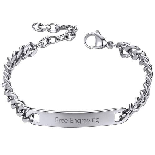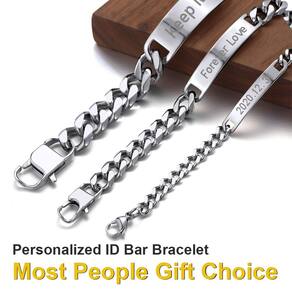 ChainsHouse Pulseira de identificação personalizada para homens e mulheres corrente cubana de aço inoxidável pulseira de barra com gravação personalizada, 7 mm de largura, 19-21 cm, caixa de presente - Pulseira de corrente de barra de identificação🔥 -- Pulseira de identificação unissex. Com um design lustroso, corrente com etiqueta de identificação no centro. Joia grossa hiphop. Lindamente trabalhado, o brilho é bom e é muito pesado. - Ótimo material – Aço inoxidável 316L resistente, banhado a ouro real 18K / banhado a metal preto. Altamente resistente à ferrugem, seguro e confortável para a pele, 100% livre de níquel, hipoalergênico. - Medida: 7 mm de largura, comprimento: 18 cm + 5 cm, peso: 20,6 g. - Presentes exclusivos para homens🔥-- As joias são ótimos presentes para o dia dos pais, aniversário, Natal, feriado, meias de Natal, formatura, padrinho, aniversário, presente de dia dos namorados para melhores amigos, namorado, irmão, pai, avô - Garantia e promessa --- Atendimento ao cliente 24 horas e garantia de devolução do dinheiro em 90 dias.