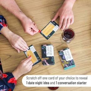 Mystery Date é um baralho de 52 cartas, cada uma contendo uma ideia única para um encontro e um início de conversa. O baralho de ideias para encontros vem em duas versões atualmente, Staying in Edition e Going Out Edition. Staying In se concentra em datas que podem ser concluídas em casa e a edição Going Out se concentra em sair de casa e ter um encontro em algum lugar em uma espécie de mini aventura.