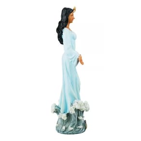 Enfeite decorativo de Iemanjá com 30,5 cm de altura. Detalhes e cores realistas. Material: resina