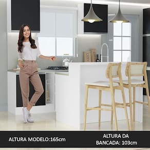 O design é moderno e feito com materiais de ótima qualidade. As portas do balcão possuem fechamento suave e as gavetas abrem totalmente para você aproveitar todo o espaço. Os puxadores são resistentes, com perfil total em alumínio e os pés são reguláveis, em PVC.