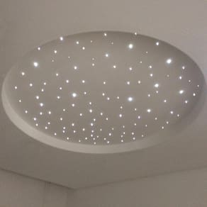 O Kit De Iluminação Noite Estrelada Fibra Ótica conta com 300 estrelas de fibra otica para o efeito estrelado. Muito utilizado na arquitetura e paisagismo como iluminação decorativa, deve ser aplicado em forros e painéis de gesso, madeira ou qualquer outra superfície de fácil furação. Ótima ideia para decorar o quarto infantil, do casal, salas de banho, home theater, spa, entre outros.O conjunto Noite Estrelada conta com fonte de luz Led com filtro interno para melhor contraste, resultando em uma perfeita nitidez da cor. Equipamento totalmente confeccionado em alumínio e tomada de alimentação com plug ac proporcionando uma melhor segurança e proteção de sua instalação. Possui encaixe perfeito para receber o conjunto de fibras óticas e funcionamento Bivolt. Qual o diferencial deste kitAs fibras de diferentes calibres fornecidos neste kit simularão algumas estrelas maiores e menores, lindo efeito estrelado mais real de uma perfeita noite estrelada, os terminais estrela que acompanham o kit farão o efeito de estrelas maiores.Características:- 300 pontos de luz, sendo : 80 cabos de 1m e 220 cabos de 2m- Equipamento iluminador profissional no kit- Fibras óticas super flexíveis e perfeita definição de pontos luz- Broca produzida em aço rápido permite fácil perfuração - Produto da maior empresa especialista em noite estrelada do BrasilEspecificações técnicasMarca: noite estrelada / inovva iluminação interioresQuantidade: 300 pontos de luz - estrelasCor: branco frioIluminador super led Voltagem: bivoltPotencia: 5w - novo chip cree led Dimensões aproximadas do equipamento (lxaxc): 7 x 6 x 8 cmÁrea indicada: 5 a 6 mItens inclusos01 equipamento iluminador compacto em alumínio com plug tomada ac,01 conjunto com cabos de fibra ótica com fibras80 cabos de 1m/220 cabos de 2m10 Estrelas maiores de 5mm de diâmetro01 broca de 0.8 mm, 01 tubo de cola, 01 manual de instalação completo 01 certificado de garantia do fabricante.Garantia: 1 ano no equipamento e 12 anos no cabeamentoInstalação - Infra Estrutura NecessáriaPara a instalação é necessário um ponto de energia rebaixo (gesso/madeira/pvc) e um vão livre de pelo menos 12cm, por trás da superfície que deve estar com pintura/acabamento final pronto. Sobre a Inovva InterioresA Inovva é especializada em iluminação com fibra ótica e led. Com a missão de disponibilizar aos clientes o que há de melhor e mais moderno no segmento, a Inovva está sempre aprimorando seus produtos para tornar a tecnologia acessível a todos. Os kits para efeito e simulação estrelado são confeccionados com as melhores matérias-primas do mercado.Para acessar todos nosso produtos com a qualidade inovva - na busca digite - noite estrelada fibra otica Marca: Noite Estrelada Inovva Interiores