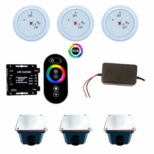 Tecnologia led smd Rosca de 1/2, Encaixe em tubo de 1/2 ou Encaixe em tubo 3/4. Led Rgb luz vermelha, verde e azul . Corpo com 80mm de diâmetro. Ângulo de abertura dos leds de 120. Potência 6w. À prova dágua IP68 - uso submerso . Tensão de alimentação: 12,0vcc estabilizada.