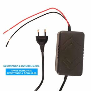 Tensão de Entrada: 110 240Vac Corrente de Entrada: 0,90 0,50 A Frequência: 50/60Hz Tensão de Saída: 12Vdc Corrente de Saída: 5A Potência: 60W Grau de Proteção: IP68