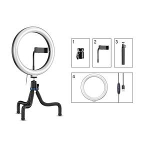 Iluminador Circular de Led Ring Light 26cm com Tripé Flexível - Apexel O ring light é um iluminador circular de led muito utilizado por maquiadores, youtubers e vloggers em geral que buscam melhor a qualidade das suas imagens, principalmente para selfies, retratos e vídeos, já que seu efeito uniformiza a pele, não faz sombras na imagem e realça os olhos. Uma boa iluminação pode colaborar muito para capturar fotos ou vídeos com qualidade superior, seja com um celular ou uma câmera profissional. Os anéis de led vêm se mostrando uma excelente opção para quem deseja uma iluminação de qualidade a preços mais acessíveis.