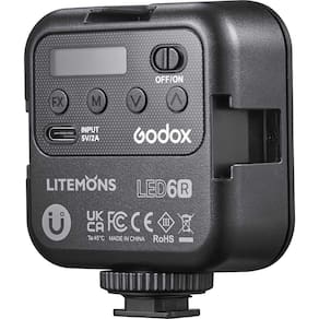 Apresentando um tamanho pequeno, possibilidades de montagem flexíveis e saída de temperatura de cor variável, a luz de vídeo LED de tamanho de bolso RGB Litemons da Godox é uma luz LED na câmera que você pode pegar e montar praticamente em qualquer lugar para adicionar a quantidade certa de luz ou cor para sua foto, seja criando narrativas, vlogs, iluminando uma festa ou fazendo fotografia de produtos. Comutável entre saída RGB para sua escolha de 36.000 cores e modo CCT para uma temperatura de cor variável entre 3200 e 6500K, esta luz versátil é regulável de 0 a 100% de brilho. Uma tela de exibição integrada mostra o modo, bem como o brilho e a carga restante da bateria.