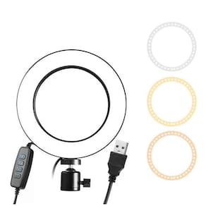 Iluminador Led Circular 10 Ring Light Live Usb Com Suporte De Celular O Iluminador de Led Circular 10 / 26cm Ring Fill Light Live USB Bilvolt com Suporte de Celular foi desenvolvido para o público que busca uma maneira prática, fácil, e portátil de ter uma iluminação de qualidade Seja para fins profissionais ou uso residencial. Você pode ajustar o ângulo da luz ajustando a articulação de ângulo, você pode montar seu celular ou sua câmera no centro do Iluminador de Led Circular.Este Iluminador Ring Light Led 10 poletadas / 26cm com Suporte de Celular conta com uma estrutura circular leve e prática de manusear, peso aproximado de 500 gramas, contando com um total de LED intensidade regulável que oferecem alta qualidade em sua luminosidade e intensidade do brilho ajustável de 0 a 100%. Iluminador Ring Ligth LED 10 polegadas de 26 centímetros possui fixado em sua estrutura um suporte para câmeras e outros dispositivos e um suporte inferior para encaixe em tripés de iluminação, sendo adaptável para permitir ajustes em angulações de 360 graus.Plugue USB Projetado com um Plugue USB Bilvot 110V-240V com comprimento de 200centímetros, você pode conectá-lo em seu PC de mesa, energia móvel, plugue de carga ou seu soquete USB a qualquer hora que você quiserBase com Cabeça Ball Head e Suporte de Celular/SmartPhone Vem com Cabeça Ball Head com Rosca 1/4 para apoiar a rotação de 90graus ou 360 graus da luz do anel; Pode ser Utilizado como lâmpada de mesa ou lâmpada de assoalho como você gosta, sua Base tem rosca 1/, universal para qualquer modelo de Tripé Tripé não Acompanha, Vendido separdamente . Adequado para sala de estar, sala de estudo, quarto do bebê, banheiro ou escritório. Tambem acompanha Suporte de Celular/SmartPhone para Telefones de 5.7 a 8.7centímetros, compatíveis com a maioria dos smartphones com ou sem case, como IOS 12 / 11 /X / 7 Plus, 7, 8, 8 Plus, X, 6, 6s, 5, 5s, 4, 4s / Samsung Nota 8, S8 / S9, entre outros.Principais Características: A temperatura de três cores pode ser alterada à vontade: diferentes efeitos de iluminação de acordo com diferentes ambientes Plugue USB de controle remoto multifuncional: controle remoto inteligente, mais preciso e conveniente O suporte é estável e não escorrega: o é feito um tripé longo e grosso, o material é firme e durável, e o encolhimento é conveniente. Controlador de potência Dimerizavel pré estabelecido com 10 opções que variam de 0 - 100%. IRC 90. Led com Vida útil: 15.000 horas. Suporte flexível para Celular/SmartPhone ou câmera e Cabeça Ball Head que lhe permite direcionar o iluminador para ângulo de até 90 graus. Tripé não acompanha Carregamento via USB 5V Bivolt 127V/ 220V suporte de Celular/SmartPhone para Telefones de 5.7 a 8.7centímetros, compatíveis com a maioria dos smartphones com ou sem case, como IOS 12 / 11 /X / 7 Plus, 7, 8, 8 Plus, X, 6, 6s, 5, 5s, 4, 4s / Samsung Nota 8, S8 / S9, entre outros.Ideal e extremamente eficaz para a Fotografia Macro, Fotografia Médica, Odontológica, Científica, Hobby e para a Iluminação/Fotografia de Produções de Maquiadores, Preenchendo de Iluminação, Retrato, Moda, Arte de Casamento, Fotografia de Propaganda, Gravação de Vídeo, Vlogs, Vídeo para Youtube, Selfies, Live Streaming,vídeos de maquiagens, e muito mais.Tripé de Iluminação, não incluso vendido Separadamente
