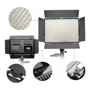 Esse iluminador possui 4 abas direcionais na parte frontal, permitindo um ajuste preciso da luz. Além disso, possui um menu de operação LCD prático e fácil de utilizar, que permite ajustar a intensidade de luz de 10% a 100% e a temperatura de cor de 5600k. Esses ajustes podem ser feitos através dos botões no iluminador ou pelo controle remoto incluso, que também permite disparar câmeras Canon, Nikon, Pentax, Sony e Konica Minolta.