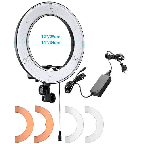 Modo de uso: O LED Ring Light pode ser encaixado em um tripé de iluminação. Altere a temperatura da cor usando filtros externos, até obter o resultado desejado.