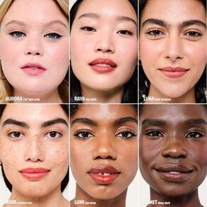 - Um iluminador líquido leve que dá um brilho úmido e combina bem com todos os seus produtos de pele favoritos para um brilho natural.