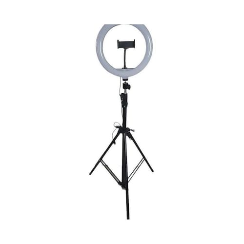 O iluminador permite obter uma luz suave e quase sem sobras devido ao seu formato circular. A luz obtida por esse produto produz resultados espetaculares em tons de peles, tornando-o ideal para fotografia/vídeo em que deseja-se destacar a pele, maquiagem, corte de cabelo e etc. É possível ajustar a intensidade da luz girando um botão. Se preferir luz mais quente, basta encaixar o filtro que acompanha o produto para simular uma temperatura de cor de 3200K a 5500K. O Ring Light montado diretamente em uma base de mesa redondo e regulagem de altura . Adaptado para: blogueiro de vídeo, rede de influenciadores, maquiador, fotógrafo, feminino, criança, etc. Não emitir a radiação de luz ultravioleta e infravermelha, baixa saída de calor, segurança e proteção ambiental.