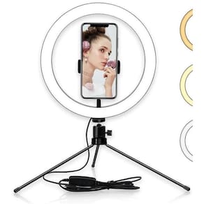 Iluminador Ring Light 10 Polegadas 26Cm Com Tripé De Mesa O pacote acompanha: 1- ring light 26cm anel de luz de 10 polegadas 1- suporte para celular 1- tripé de mesa 1- controle de intensidade de iluminação Detalhes do ring light: Fonte de luz: led´s Quantidade de leds: 64 peças Diâmetro: 26 cm Potência total: 24w Temperatura de cor: 5500k Cri índice de renderização de cores : 83 Adaptador universal de tripé Segmentos: 3 Cabo usb de alimentação 3 temperaturas: luz branca, luz quente, luz natural. Entrada usb compatível com fonte de celular. Ean: 6015607942992