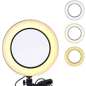 Iluminador Ring Light 16Cm Usb Led Misto 3500K 5500K + Tripé Iluminador Ring Light de 16 centímetros (6,5 polegadas), desenvolvido para maquiadores, fotógrafos, cinegrafistas e etc, que buscam uma ótima maneira de iluminar com perfeição. Você pode ajustar o ângulo da iluminação por possuir um suporte articulado. É possível controlar as diferentes temperaturas de cores através do controle de ajuste que vai de 3500k à 5500k. Na frente dos leds tem um filtro difusor para suavizar a luz espalhando a luz com maior uniformidade.