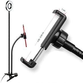 Faça vídeos com qualidade ou tire ótimas fotos de selfie com este suporte ring light. Acessório perfeito para criar vídeos para o Facebook, YouTube, Twitter, Snapchat, FaceTime, live.me, live.ly, Twitch, musical.ly etc. Hastes flexíveis que podem dobrar para qualquer forma, suporte de rotação do smartphone gira 360 graus. Ajuste para qualquer ângulo para obter uma iluminação perfeita. Grampo para fixação em mesas, bancadas, prateleiras e etc