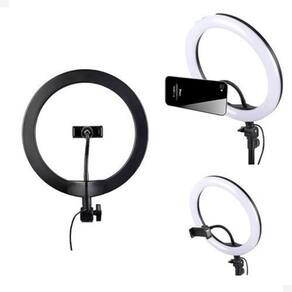 -alimentação: 5V Usb Não acompanha fonte Usb -potência: 10 W -quantidade de lumens: 800 Lm -tipo de iluminação: Led -quantidade de leds: 162 -tamanho: 11 polegadas 30,0 cm -temperatura mínima da cor: 3200 K branco quente -temperatura máxima da cor: 5600 K branco frio -formatos da luz: Aro -ajuste controle de cor: Sim -ajuste controle de iluminação brilho : Sim -acessórios inclusos: Suporte para Smartphone -tripé: Não