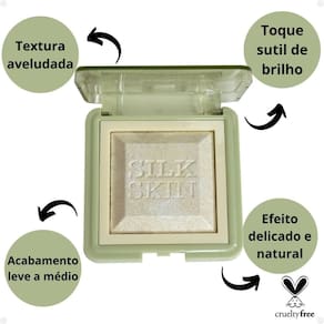 Um toque sutil de brilho para destacar sua beleza natural. Com uma textura aveludada, o novo iluminador da linha slik skin oferece um acabamento leve a médio, ideal para quem busca um efeito delicado e natural. Acabamento Radiante. Não testado em animais.