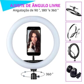 Ring light led é um iluminador com ajuste de até 10 níveis de intensidade de luz. Possui 03 tonalidades de cor branca. Alimentado através de um cabo USB, devendo estar sempre conectado a uma fonte de energia para acender.