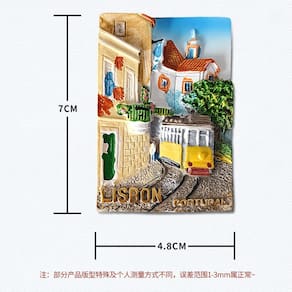Material: Resina Tamanho: 4,8 x 7 cm Peso: 60 g Paisagem urbana vibrante de Lisboa: apresenta arquitetura icônica de Lisboa, um bonde e uma vegetação exuberante para uma representação colorida e detalhada da cidade. Material de resina de alta qualidade: feito de resina durável, este ímã de geladeira é resistente e duradouro. Lembrança perfeita: uma lembrança imperdível de Portugal, capturando o charme de Lisboa em um design 3D lindamente elaborado. Uso versátil: ideal para decorar geladeiras, armários, quadros brancos ou qualquer superfície metálica em sua casa, cozinha ou escritório. Compacto e leve: medindo 4,8 x 7 cm e pesando 60 g, tem o tamanho perfeito para facilitar a colocação em qualquer superfície magnética.