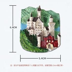Material: Resina Tamanho: 5,4 x 6,4 cm Peso: 60 gDesign icônico do Castelo de Neuschwanstein: Este ímã de geladeira 3D captura lindamente o deslumbrante Castelo de Neuschwanstein na Baviera, Alemanha, com arquitetura detalhada e cores vibrantes. Artesanato em resina de alta qualidade: feito de resina durável, este ímã pintado à mão realça as características intrincadas do castelo, garantindo cores e detalhes duradouros. Lembrança perfeita da Baviera: uma ótima maneira de lembrar sua viagem à Alemanha, com o majestoso Castelo de Neuschwanstein, um dos marcos mais famosos da Europa. Decoração versátil: ideal para decorar geladeiras, quadros brancos, armários e outras superfícies magnéticas, adicionando um toque de história e charme alemães ao seu espaço. Leve e durável: pesando apenas 60 g, esse ímã resistente é fácil de colocar e não danifica as superfícies, tornando-o uma adição prática e bonita à sua coleção.