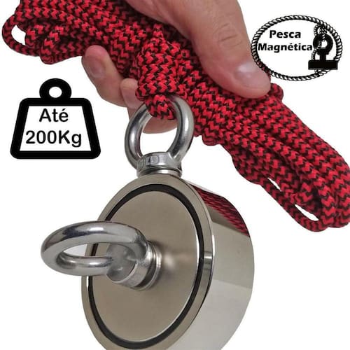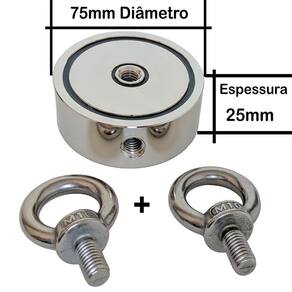 Imã De Neodímio Para Pesca Magnética Até 200 Kg De Tração na condição ideal.Diametro 75mmCondição para atingir a força de 200 kilos;A superfície de contato deve cobrir toda a área do imã, ser de aço carbono plano com espessura igual ou maior que a espessura do imã.A Força deve ser aplicada a um angulo de 90 graus da base de contato, a força do imã é vetorial. Marca: Fácil Negócio Importadora