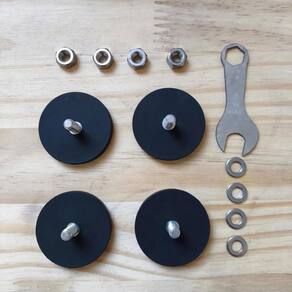 Para fixar os imãs voce precisa de uma broca de metal número 8mm para escarear, abrir um pouco mais, alguns milimetros para que a bucha do imã entre no buraco já existente no pé do suporte, veja as fotos no anuncio. É algo muito simples, mas o furo existente não é suficiente para encaixar a bucha do imã. Ao escarear e entrar a base do imã ficará perfeitamente reta e alinhada com o pé do suporte, ai vc pode colocar o parafuso e apertar. Pode usar uma lima também, pois é muito pouco o que precisa tirar para o imã entrar.
